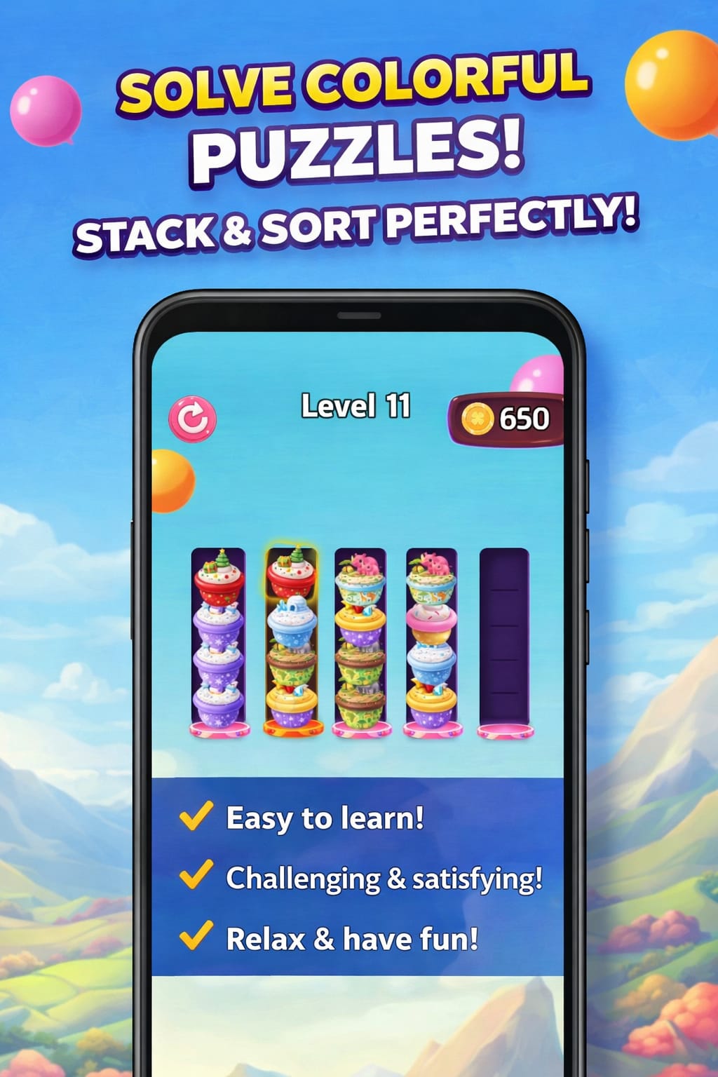 Test your puzzle-solving skills, beat high scores, and compete with friends to become the ultimate cupcake master.
